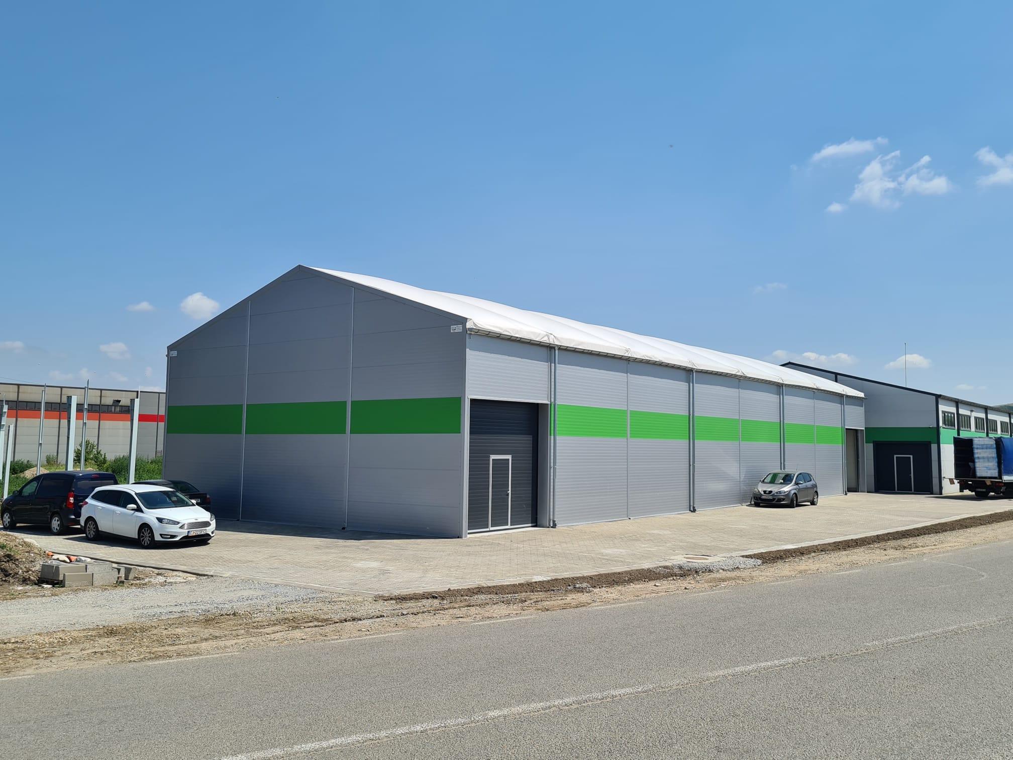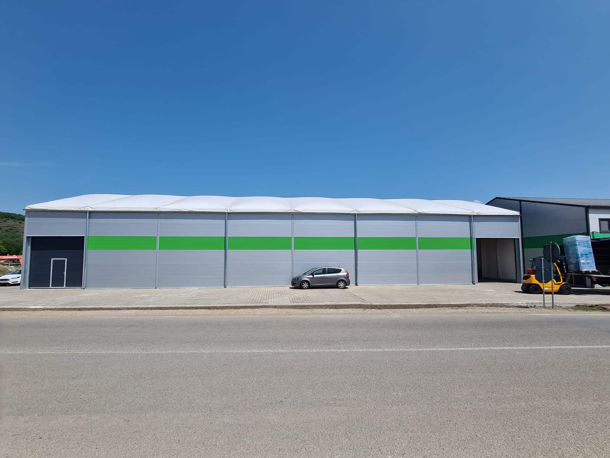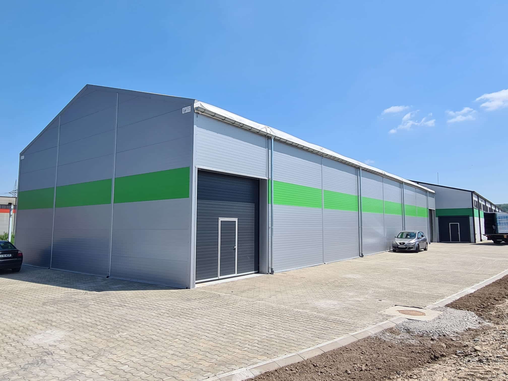 Odată cu diversificarea gamei de produse comercializate și ca urmare a creșterii volumelor vândute către clienții finali și către rețeaua proprie de distribuitori, necesitatea extinderii zonei de depozit a devenit prioritară. Având în vedere regimul de construcție aferent zonei de amplasare, clientul a optat pentru o soluție de hală tip cort – construcție provizorie, cu o durată de viață mare, cu costuri de întreținere și mentenanță reduse.