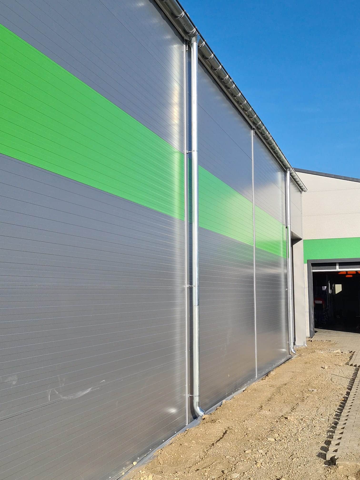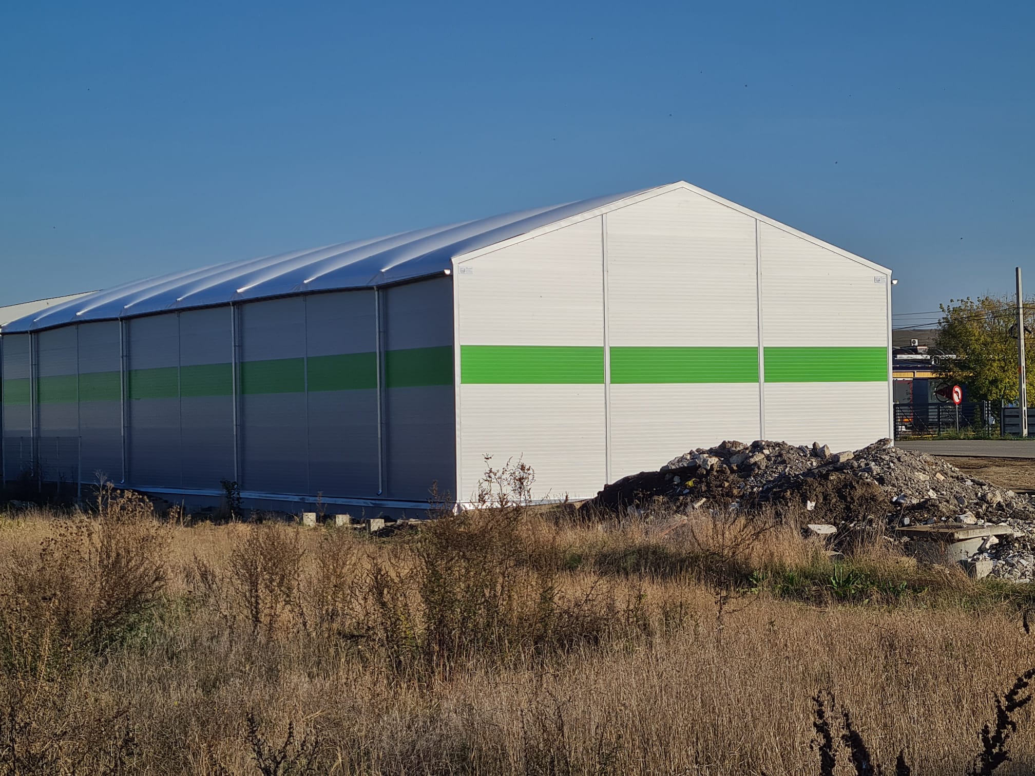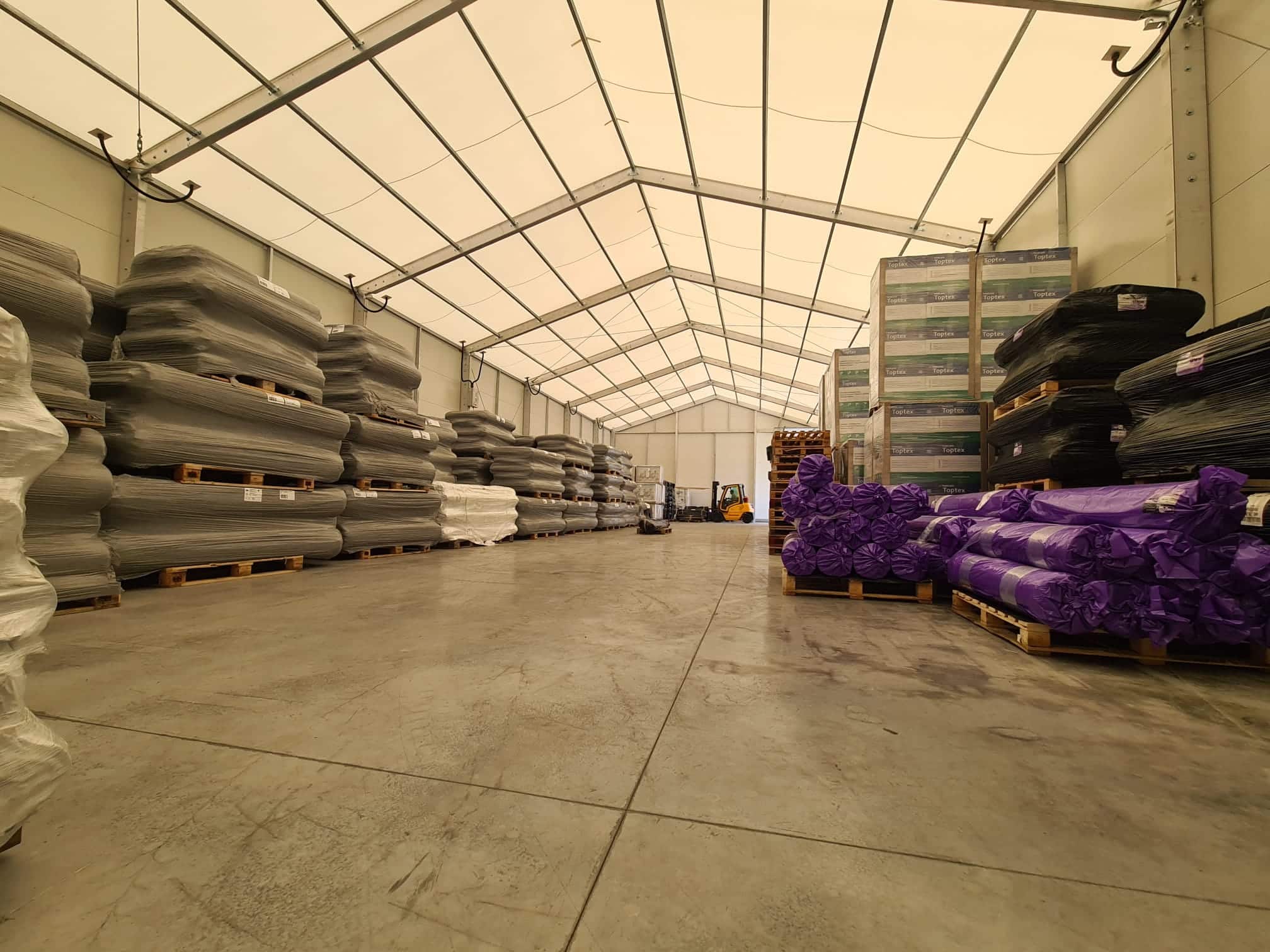Odată cu diversificarea gamei de produse comercializate și ca urmare a creșterii volumelor vândute către clienții finali și către rețeaua proprie de distribuitori, necesitatea extinderii zonei de depozit a devenit prioritară. Având în vedere regimul de construcție aferent zonei de amplasare, clientul a optat pentru o soluție de hală tip cort – construcție provizorie, cu o durată de viață mare, cu costuri de întreținere și mentenanță reduse.