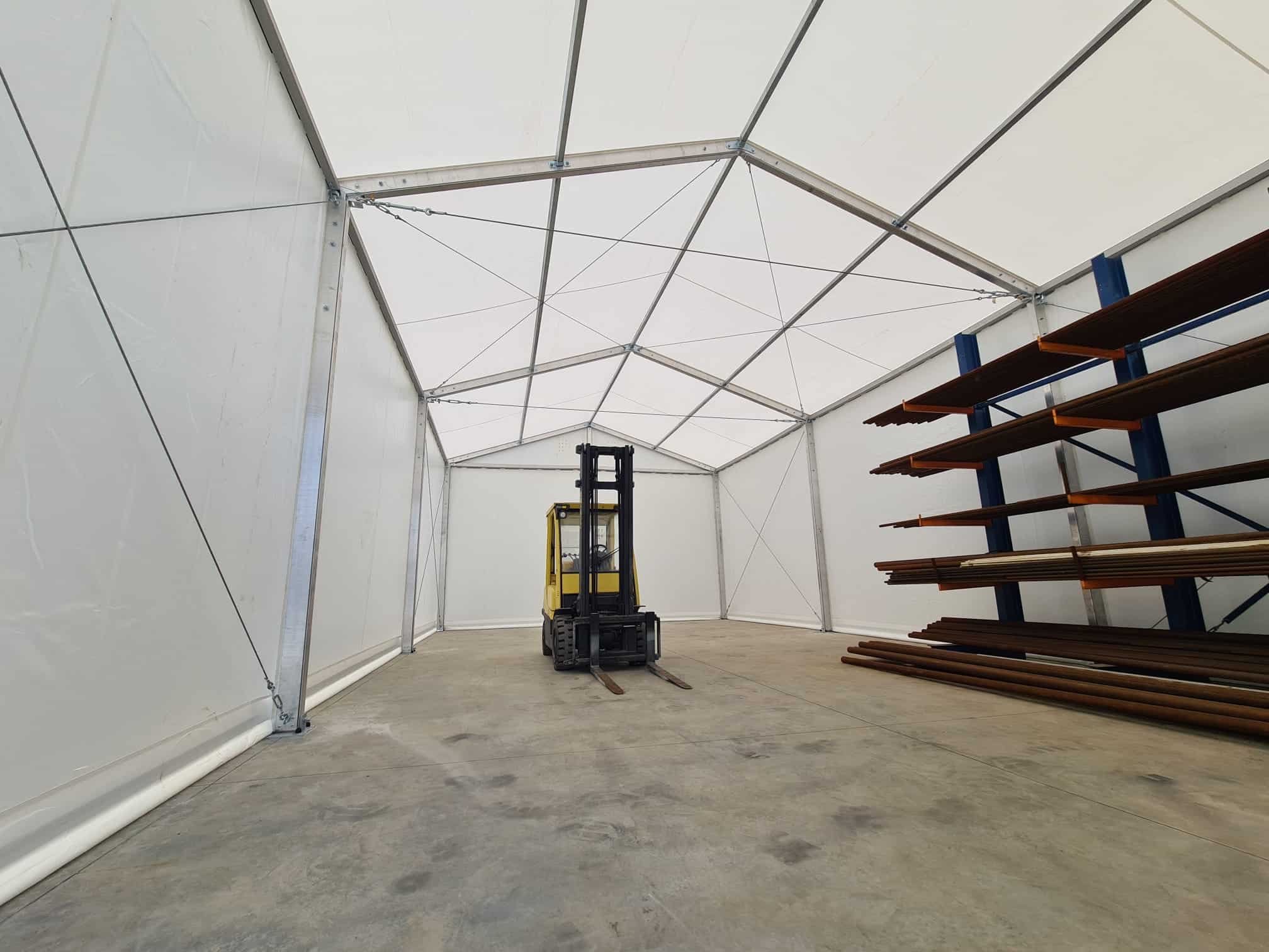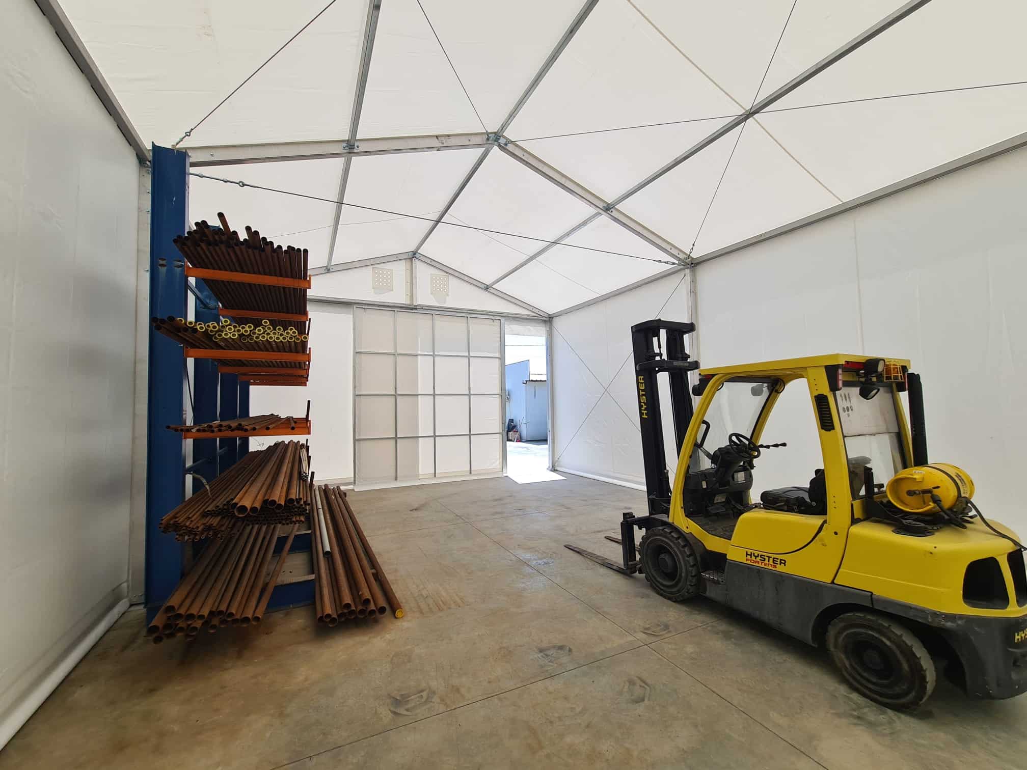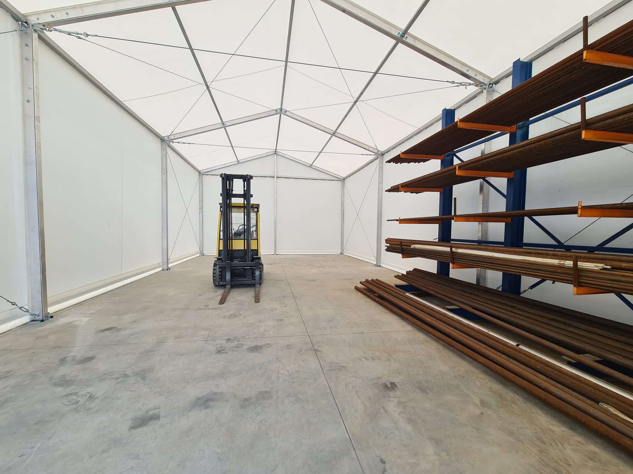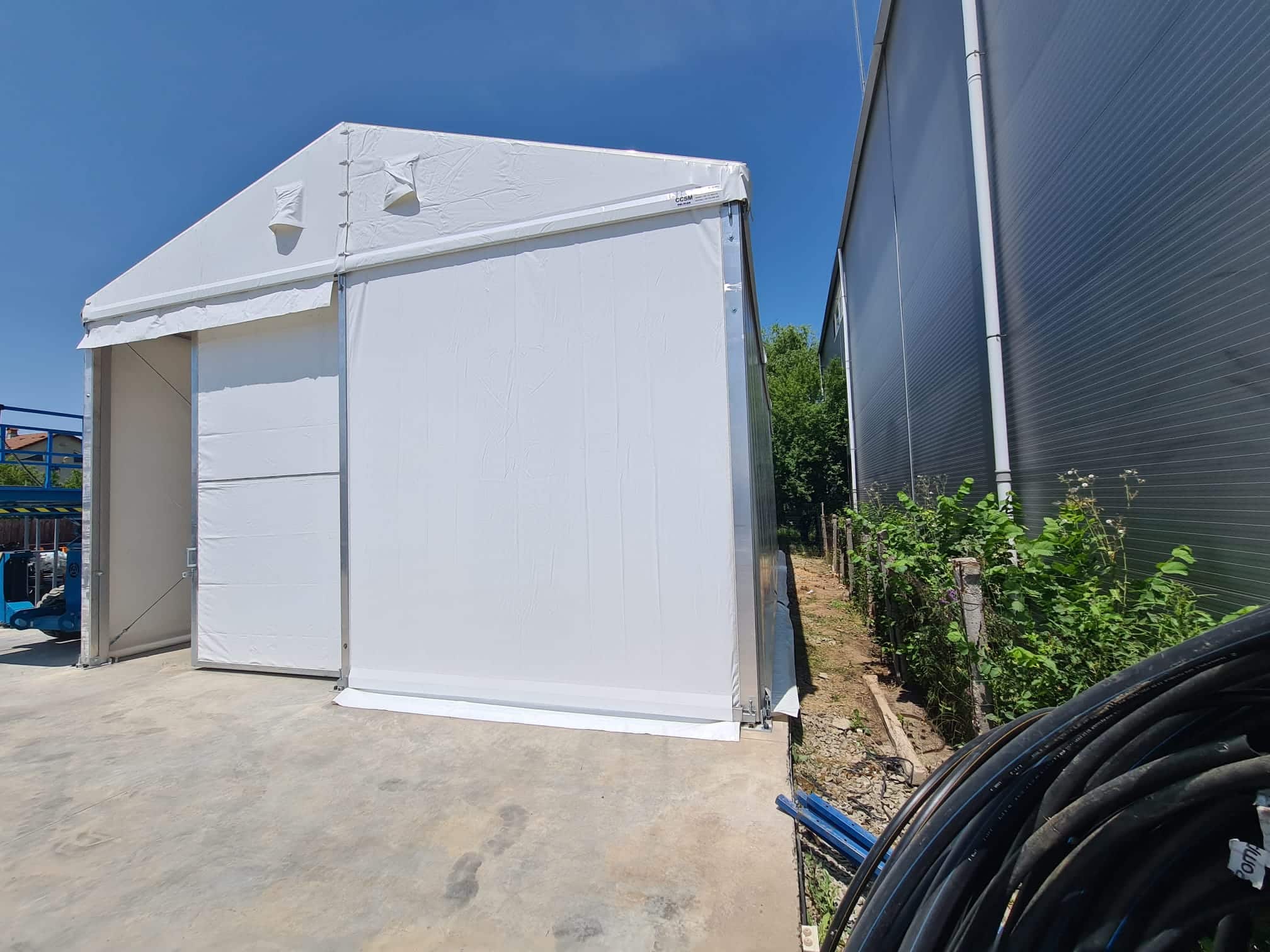 Pentru învelitoare s-a utilizat prelată premium produsă în Austria, special concepută pentru corturi industriale și hale tip cort.